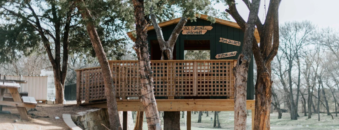 Inspired by the little rascals we've got a clubhouse (in a tree) ready for play. Let your imagination soar. There are tables located next to the treehouse for supervised play.